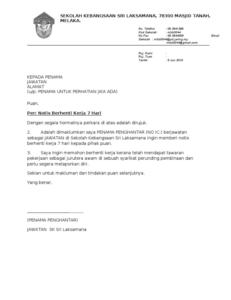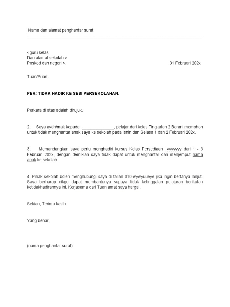 Surat Rasmi Tidak Hadir Ke Sekolah Pdf